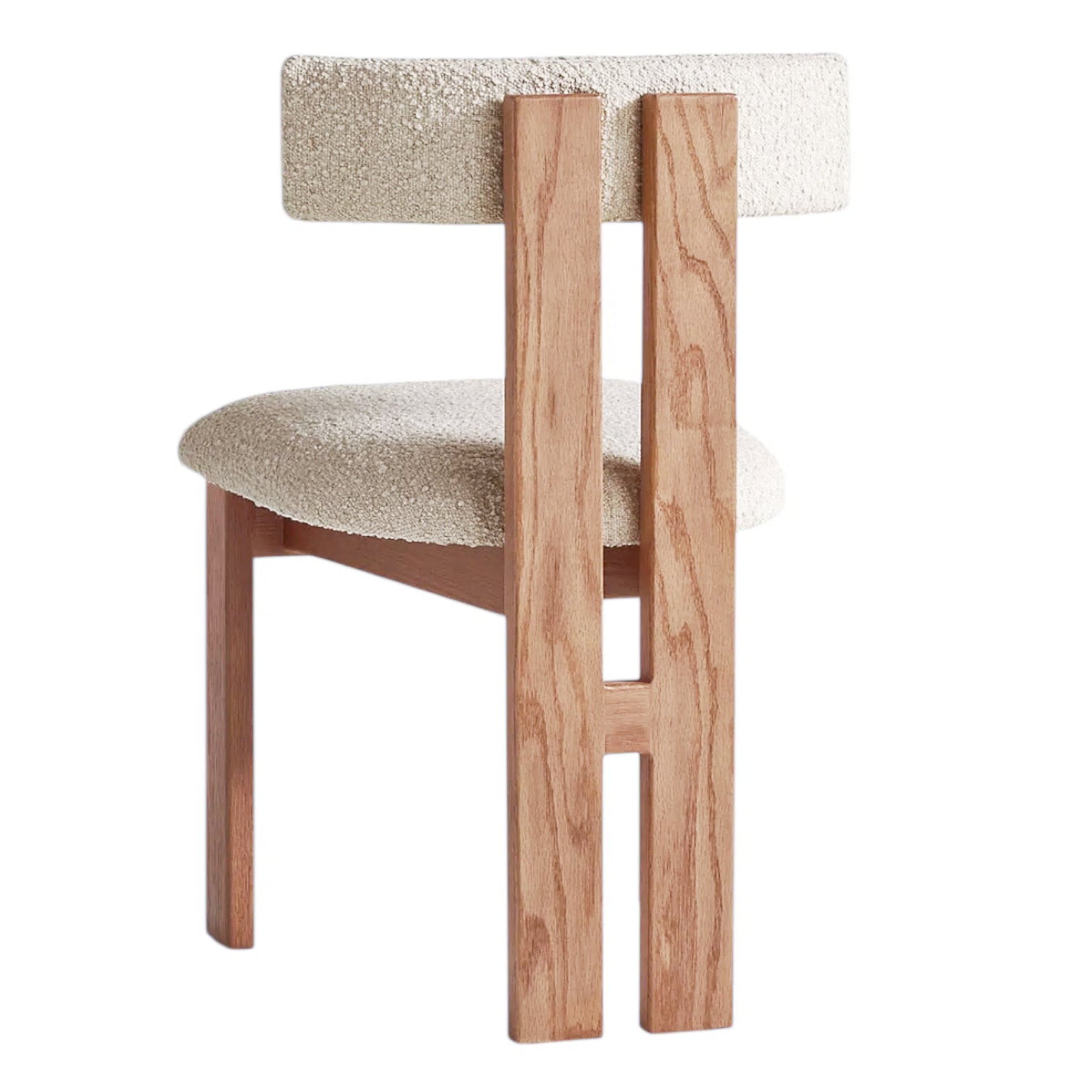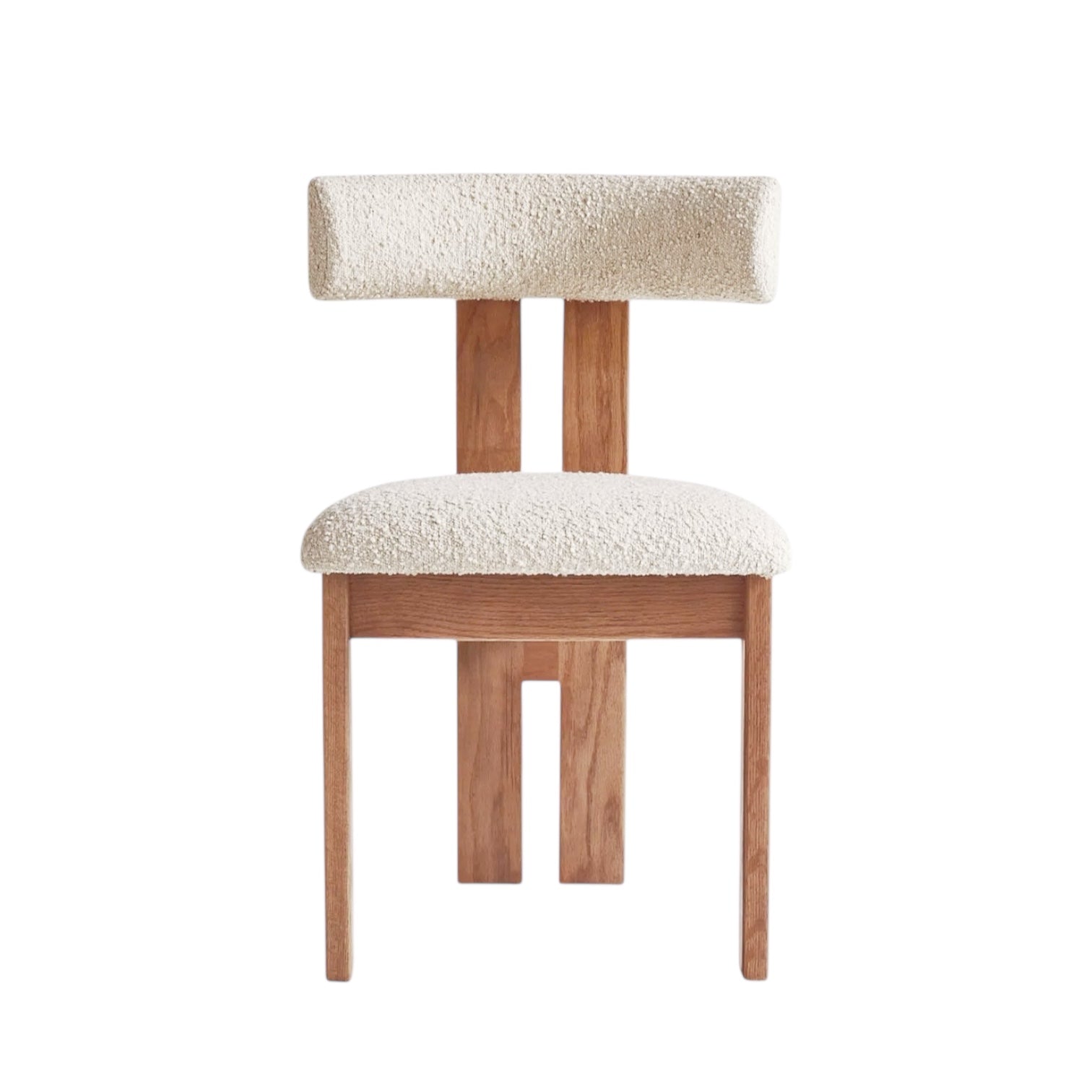 The Oslo Dining Chair captures the essence of modern sculptural design through bold geometry and refined craftsmanship. Uphostered in premium bouclé fabric, the seat and backrest offer a textured softness that complements its architectural form.